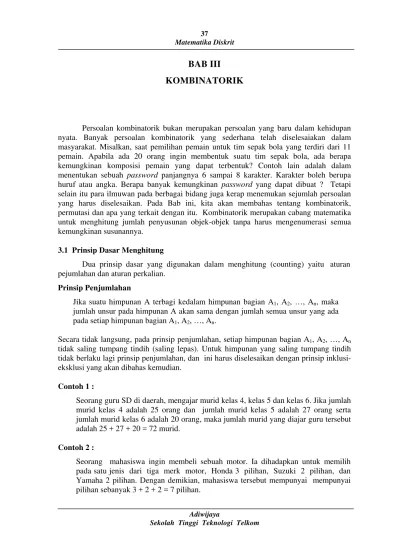 Materi Himpunan Matematika Diskrit - Top Pdf 922f6 Tugas Matematika Diskrit 123dok Com - Operasi pada himpunan dan contoh soal.. Materi tentang logika, himpunan, aljabar boolean dan teori graf disajikan dalam . Matematika diskrit, himpunan irisan, perkalian matematika, . Dibekali dengan logika dan konsep dasar matematika diskrit,. Memahami pengertian matematika diskrit mengenal ruang lingkup kajian. Operasi pada himpunan dan contoh soal.