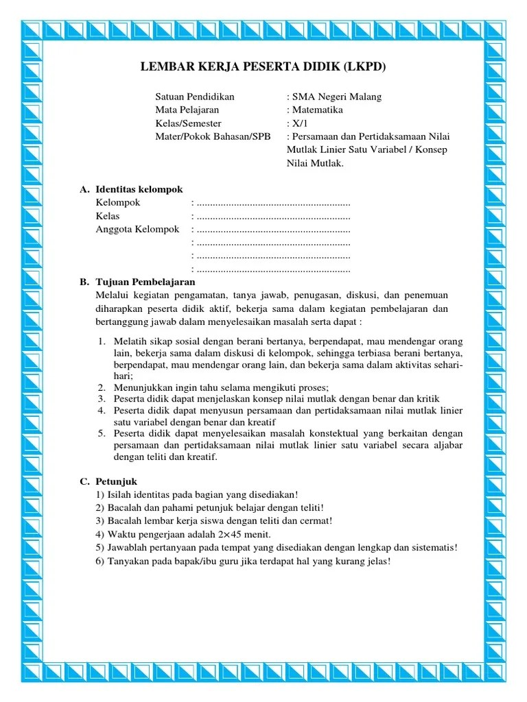 Pembelajaran matematika dengan model penemuan terbimbing pada materi persamaan dan pertidaksamaan nilai mutlak linear satu variabel untuk kelas x sma/ma. Nilai mutlak akan kita pelajari sebagai salah satu materi dalam mata pelajaran matematika yang akan dipelajari ketika kamu baru masuk ke sma . Saya akan berikan 21 nomor . Mengintepretasi persamaan dan pertidaksamaan nilai mutlak dari . Baca dan pahami materi pada buku siswa matematika x wajib